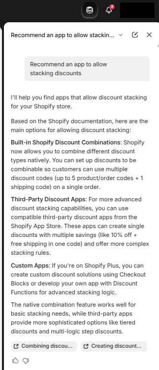 What impressed me about Sidekick’s response was that it had the intelligence to tell me Shopify natively solves my query and didn’t just give me what I asked for (apps I’d probably need to pay for).