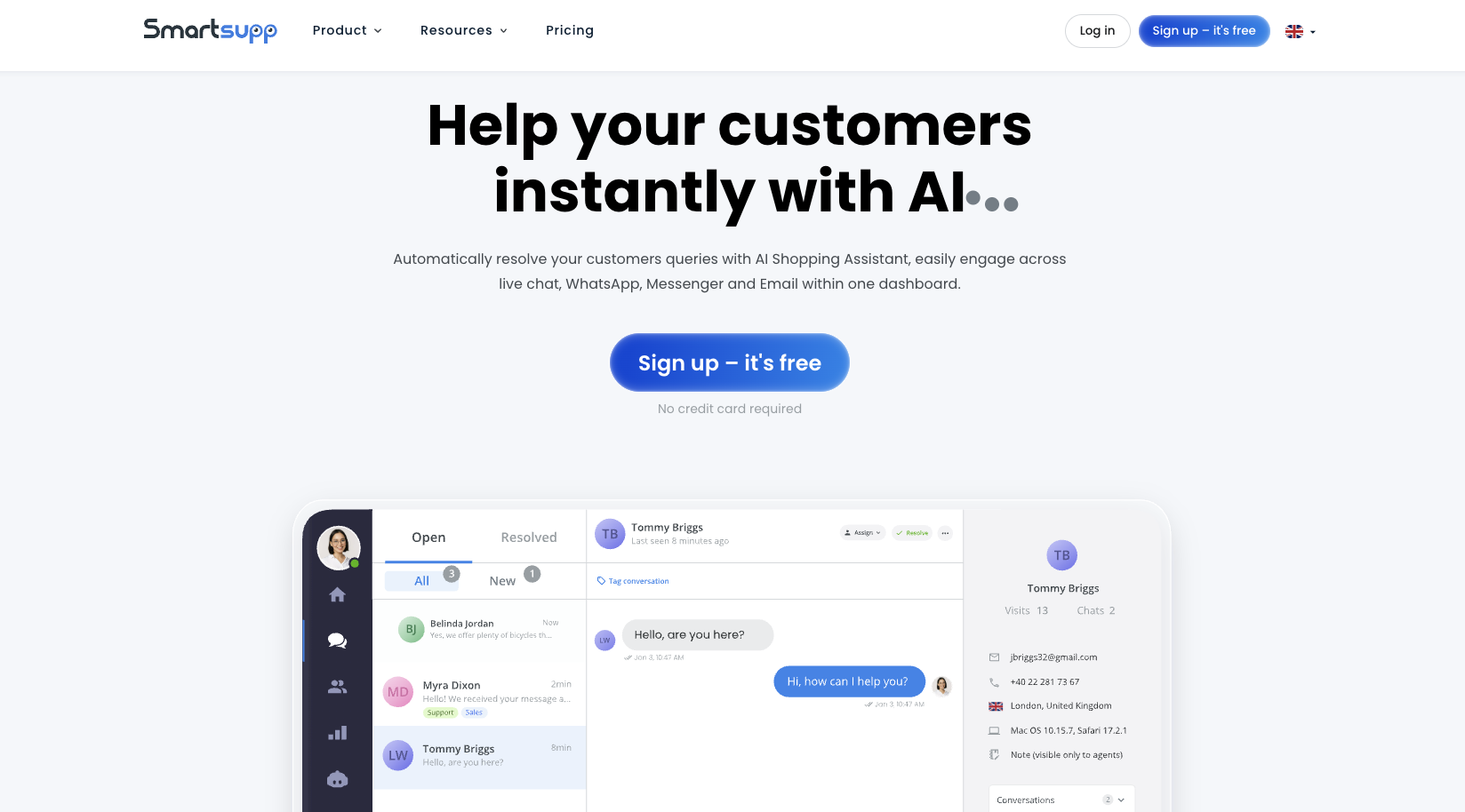 Cons: The free plan limits users to 50 chats per month and only 14 days of chat storage. Advanced AI and lead‑generation bots are only available on higher tiers. Some users find Smartsupp’s visualization tools underpowered and more suited to small teams, which might not be a deal-breaker for small businesses, but could impact your ability to scale. Email and phone support are limited. It costs extra to scale to multiple locations or channels.