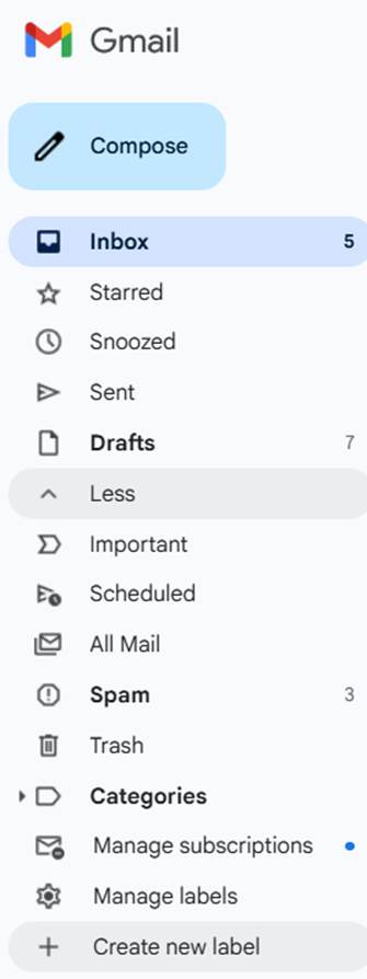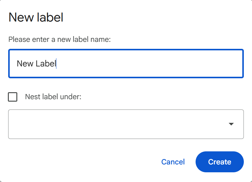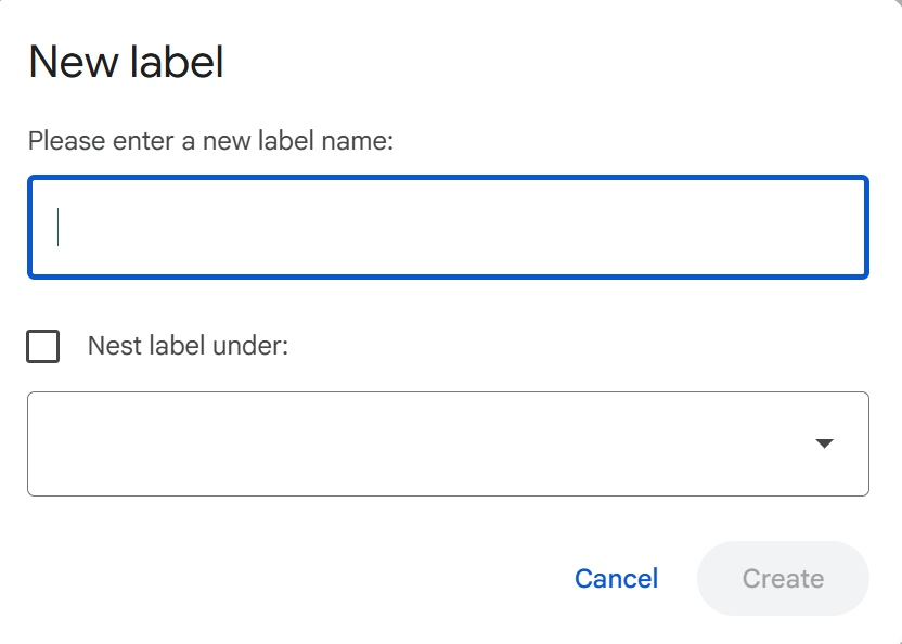 For a more structured hierarchy, you can create sub-labels (like subfolders). For example, a general Projects label could contain additional labels for specific projects stored within it.