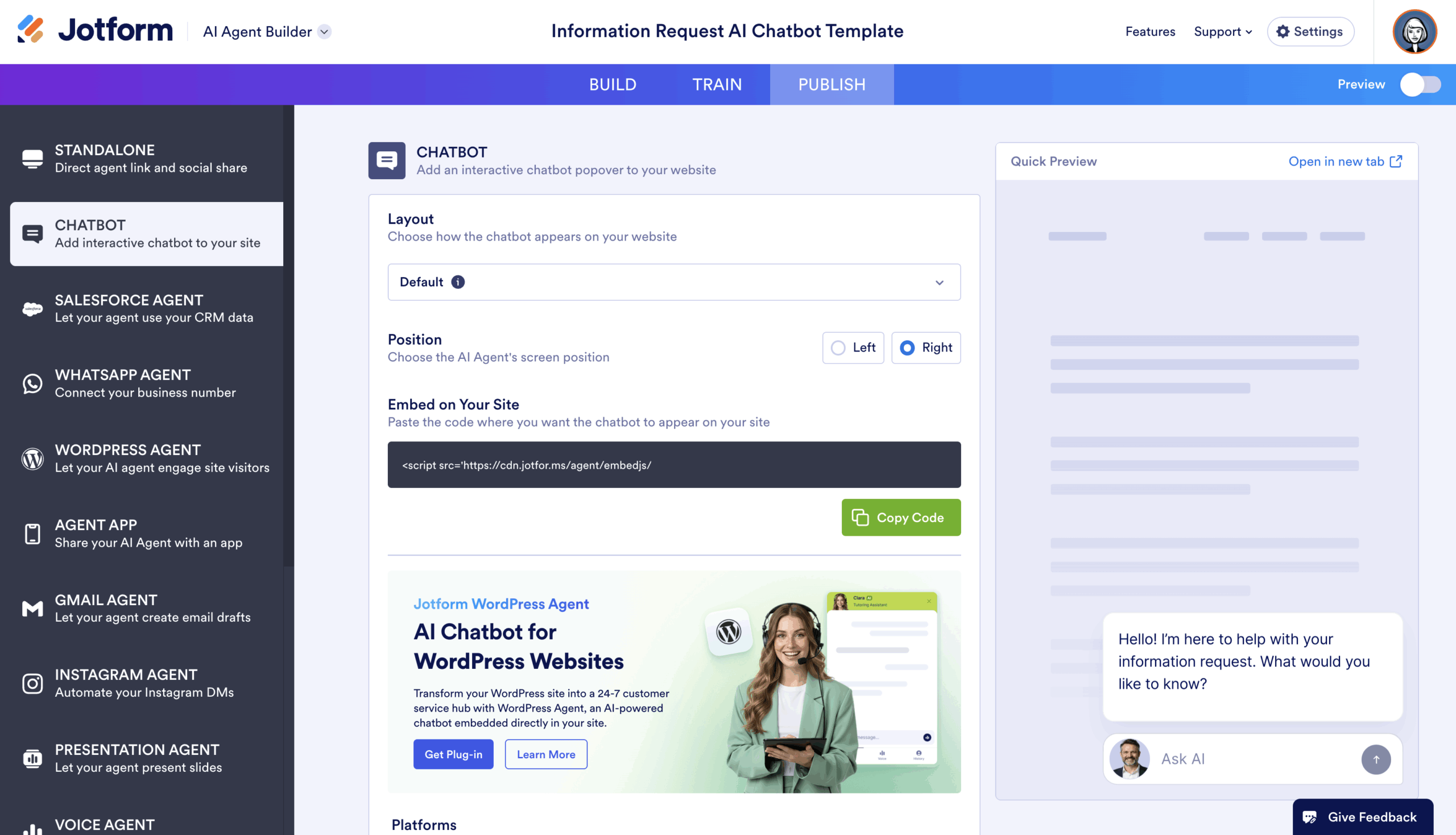 Jotform AI Agents’ convenient Jotform AI Chatbot Builder makes chatbot testing easy.