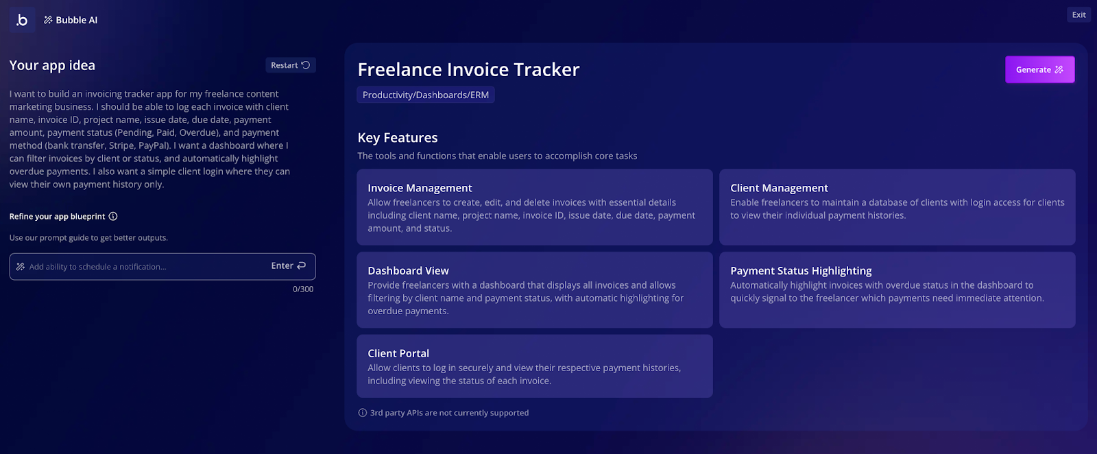 - The 200-character limit on AI prompts is frustrating if you want to build something more complex out of the gate.