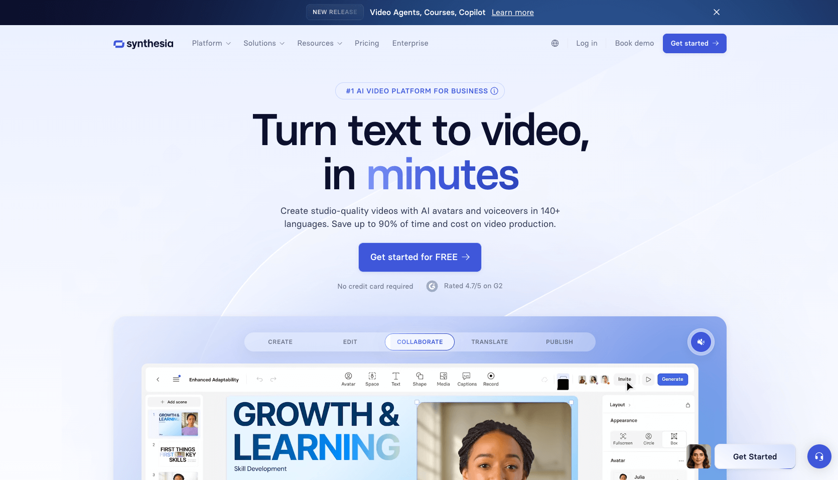 Synthesia is the leading platform for AI avatar videos, enabling users to create professional, on-screen presenters in multiple languages. It’s perfect for training, marketing, and corporate communication without the need for actors or studios.