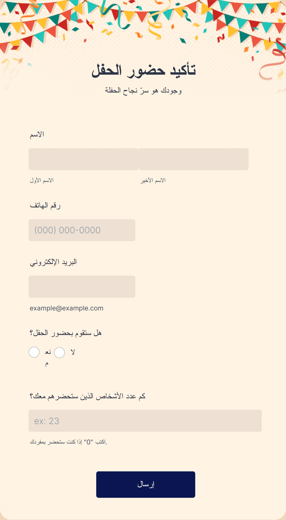 - نماذج الحدث: غالبًا ما تجمع أسماء الحضور وتفاصيل الاتصال وأرقام التذاكر وتفضيلات الجلسة.