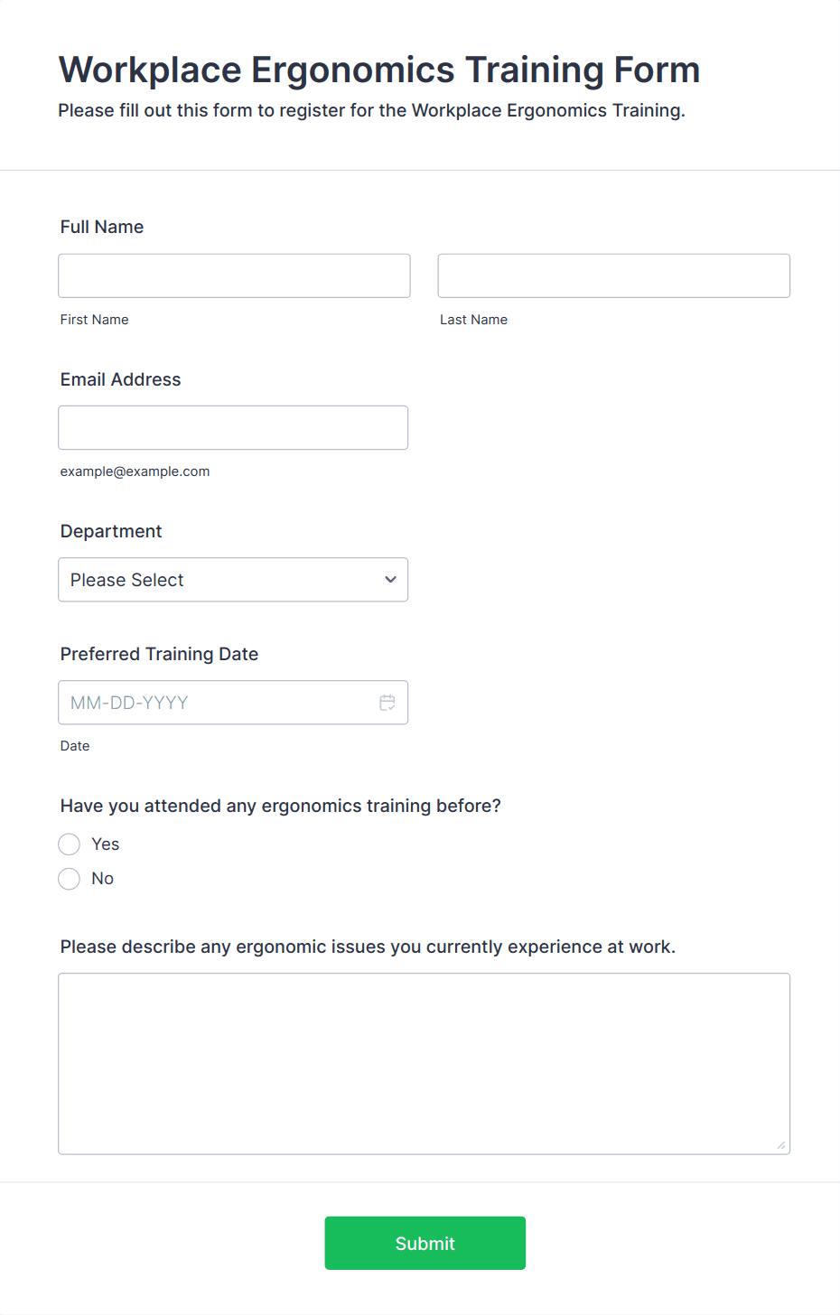 - Pre-Training Assessments: Use multiple-choice, dropdowns, and short text fields to gauge baseline knowledge.