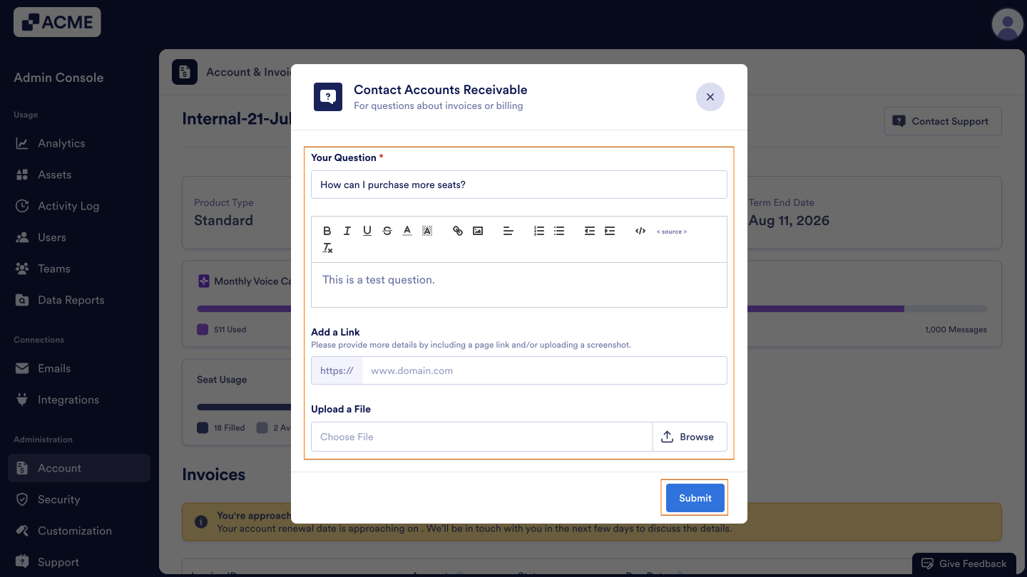 If you have any question that comes to your mind, you can always use the Contact Support button at the top right of the page: