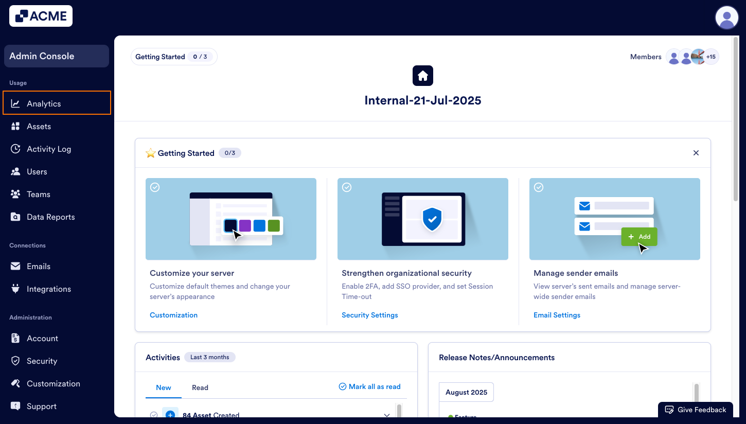 - In the Admin Console, click on Analytics on the left-hand side of the page.
