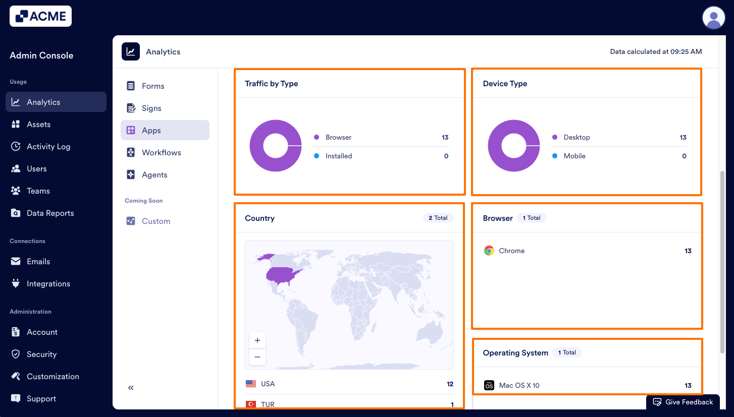 - Next, click on Apps to open Sign Documents Analysis data.