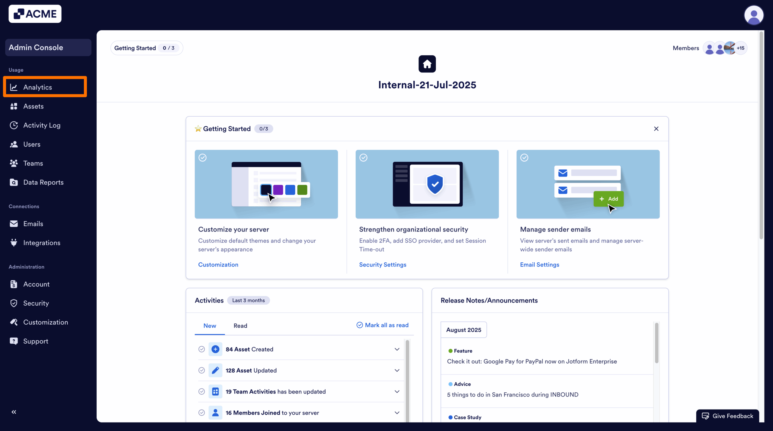 - In the Admin Console, click on Analytics on the left-hand side of the page.