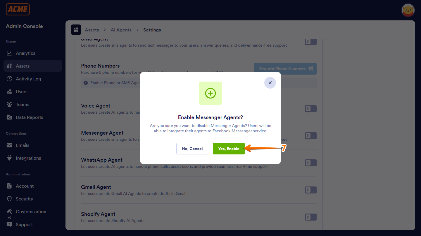 1. Then, in the Enable Messenger Agents window that pops up, click on Yes, Enable.