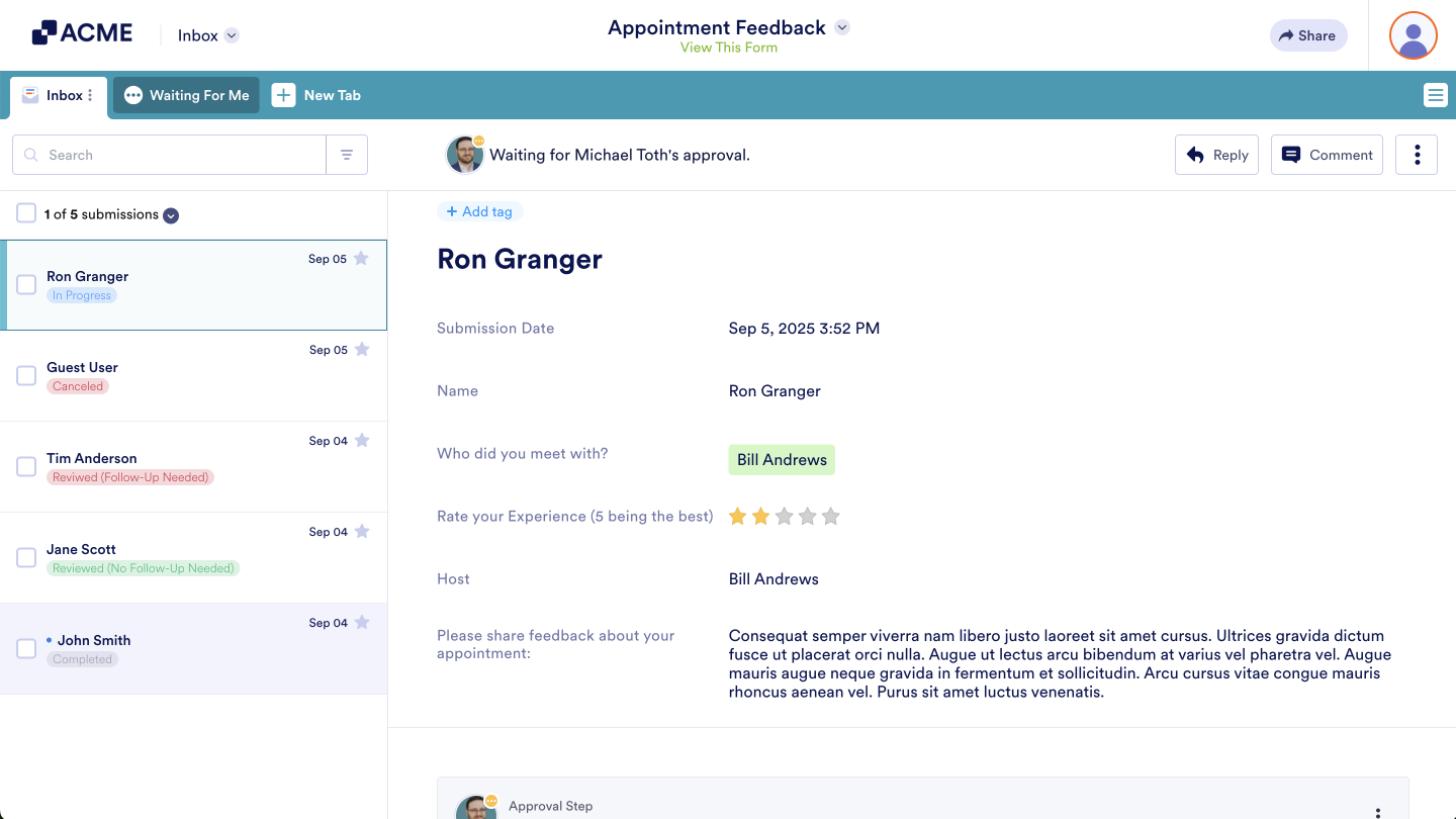 After clicking on View Submissions, you’ll be brought to the Inbox for the Workflow.