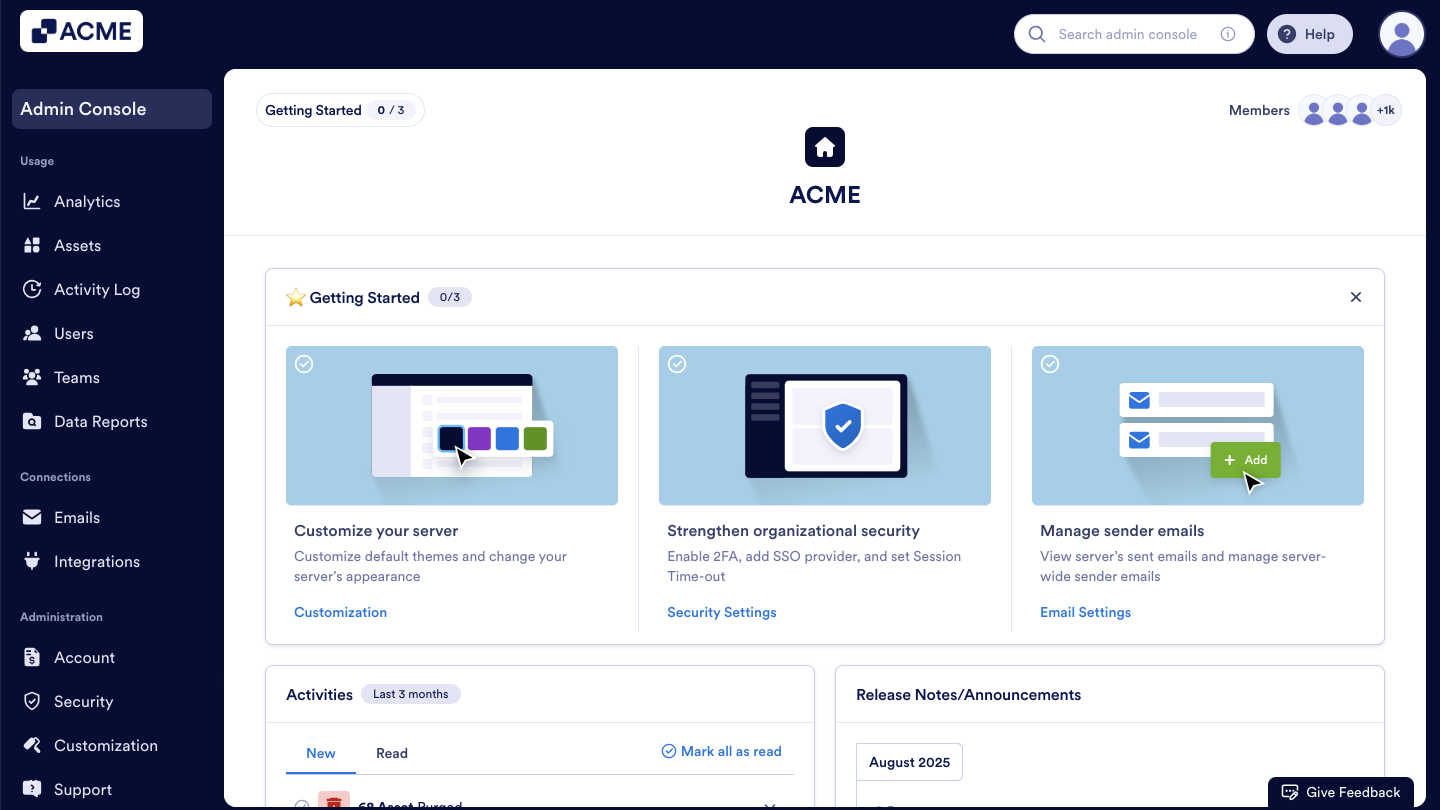 The Admin Console is your centralized hub for running the entire organization with ease. From here, admins can: